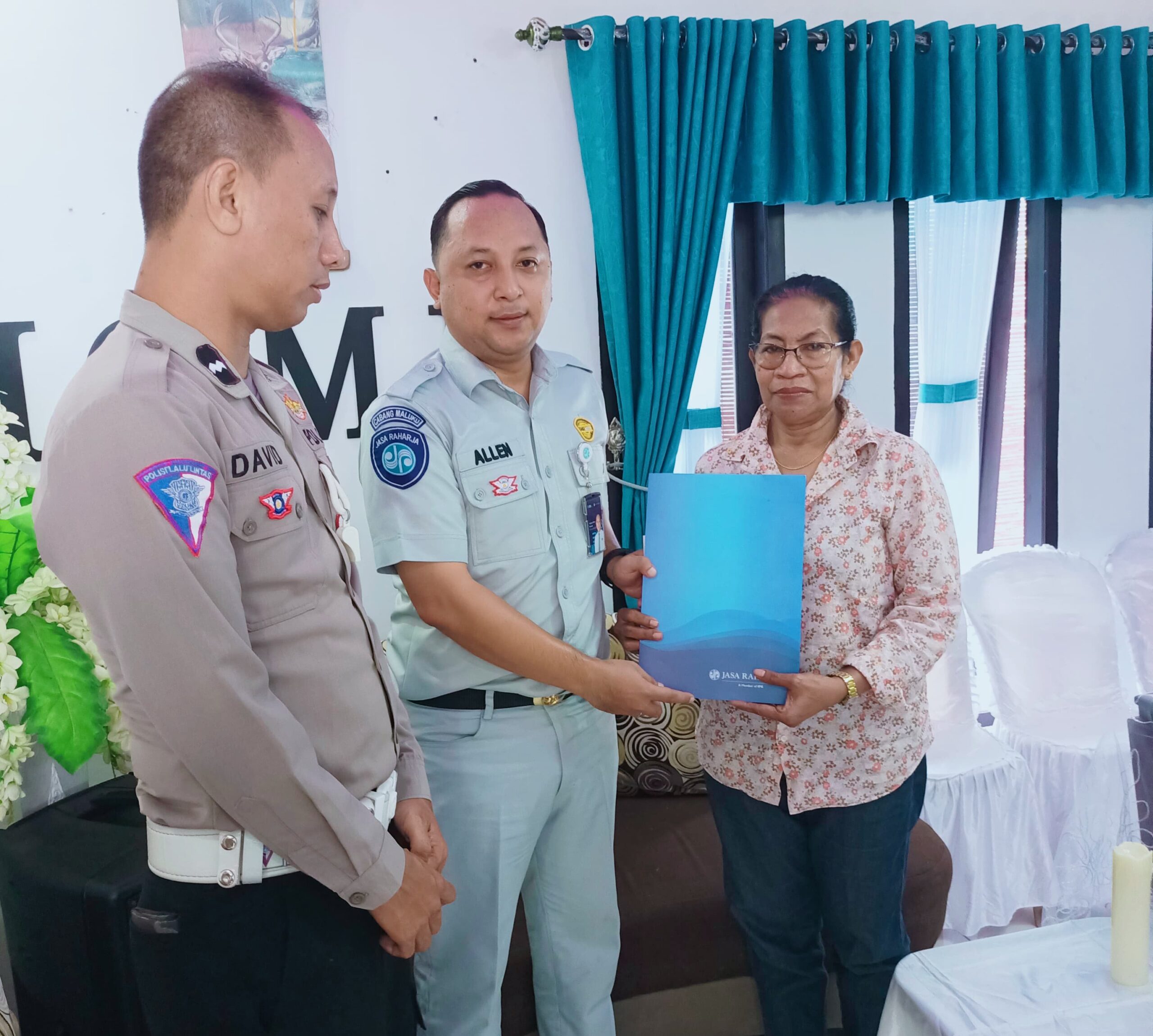 Menindaklanjuti hal tersebut, Setelah mendapat informasi dari Polres Ambon, Mobile service Jasa Raharja Cabang Maluku saudara Yulians A Katuuk, langsung bergerak cepat untuk melakukan survei dan mendatangi ahli waris korban serta membantu melengkapi dokumen ahli waris yang merupakan ibu kandung dari korban.