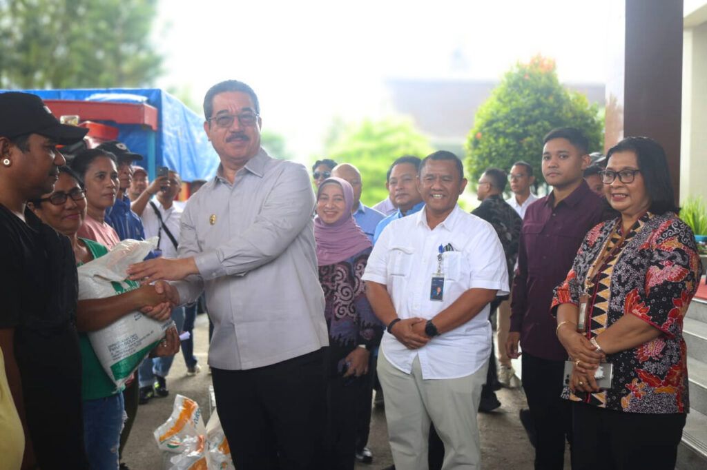 Seremoni acara Penyaluran Cadangan Pangan Pemerintah untuk Bantuan Pangan Beras ke masyarakat dilaksanakan di Depan Kantor Gubernur dan dipimpin langsung oleh Gubernur Maluku Hendrik Lewerissa, Jumat (18/7/2025).